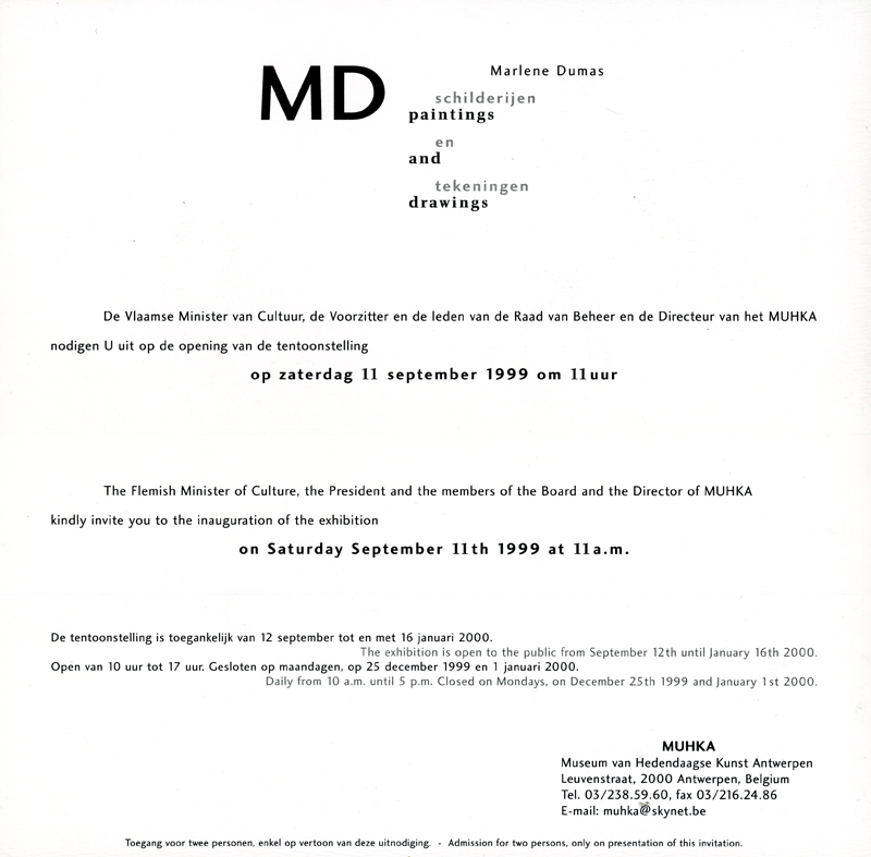 Marlene Dumas, Folded Card, Museum van Hedendaagse Kunst Antwerpen (Belgium), 1999