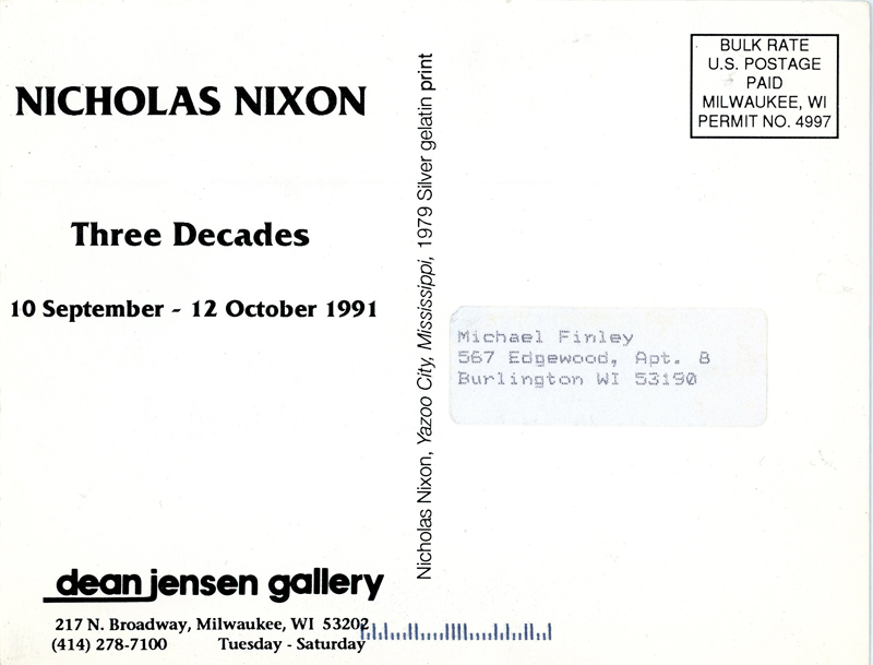 Nicholas Nixon, “Yazoo City, Mississippi” (1979), Card, Dean Jensen Gallery (Milwaukee), 1991