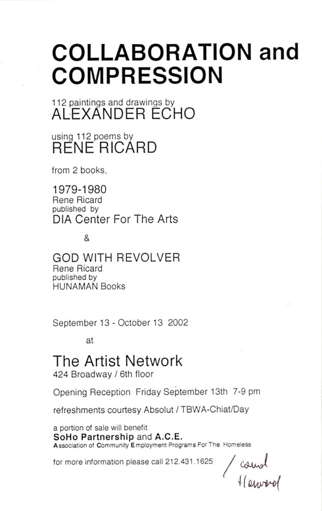 Rene Ricard & Alexander Echo, Collaboration and Compression, Card, The Artist Network, 2002