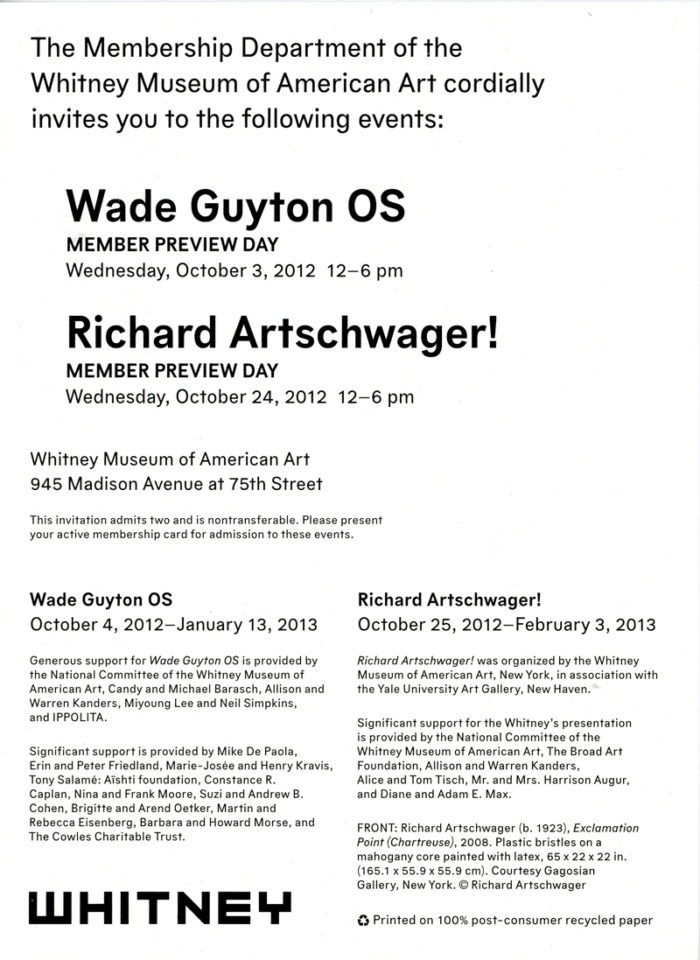 Richard Artschwager, “Exclamation Point” (2008), Card, The Whitney Museum, 2012