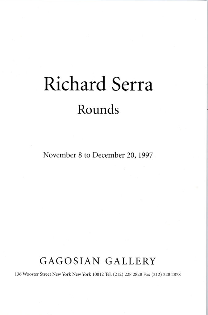 Richard Serra, Rounds, Folded Card, Gagosian Gallery, 1997