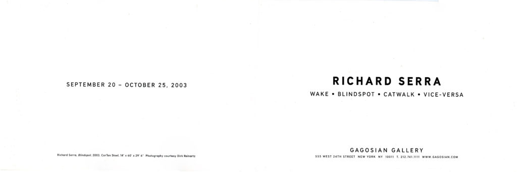 Richard Serra, Wake Blindspot Catwalk Vice-Versa, Folded Card, Gagosian Gallery, 2003