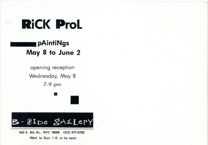 Rick Prol, Photo by Mark Benaceraff, Card, B-Side Gallery, 1985