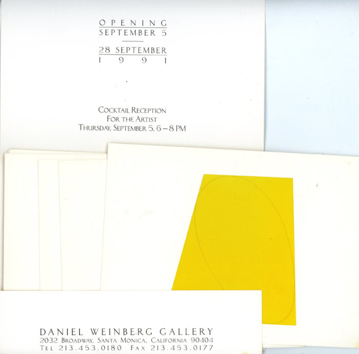 Robert Mangold, Studies for the Attic Series, Folded Announcement Card with Card Collection Inside, Daniel Weinberg Gallery (California), 1991