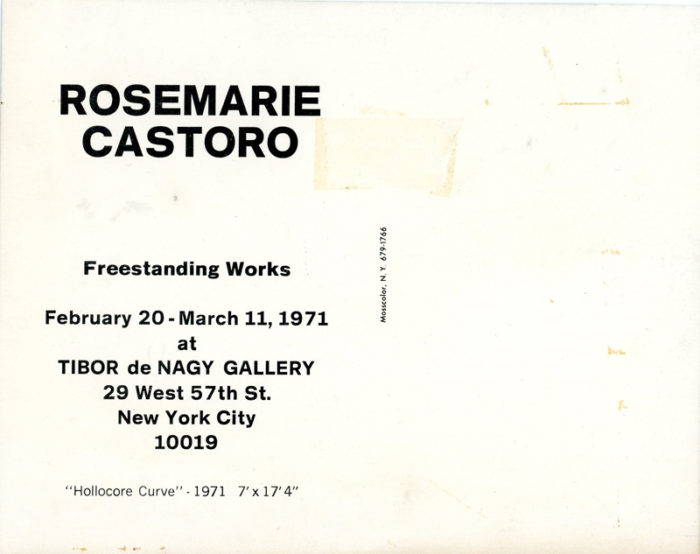 Rosemarie Castoro, “Hollocore Curve”, Card, Tibor de Nagy Gallery, 1971