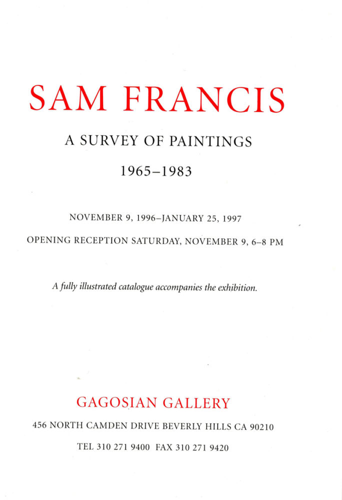 Sam Francis, Folded Card, Gagosian Gallery, 1997