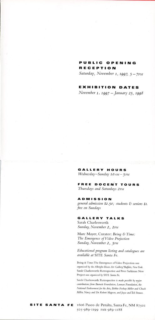 Sarah Charlesworth, Retrospective, Also Peter Sarkisian, Bruce Nauman, Four-Fold Card, SITE Santa Fe, 1997