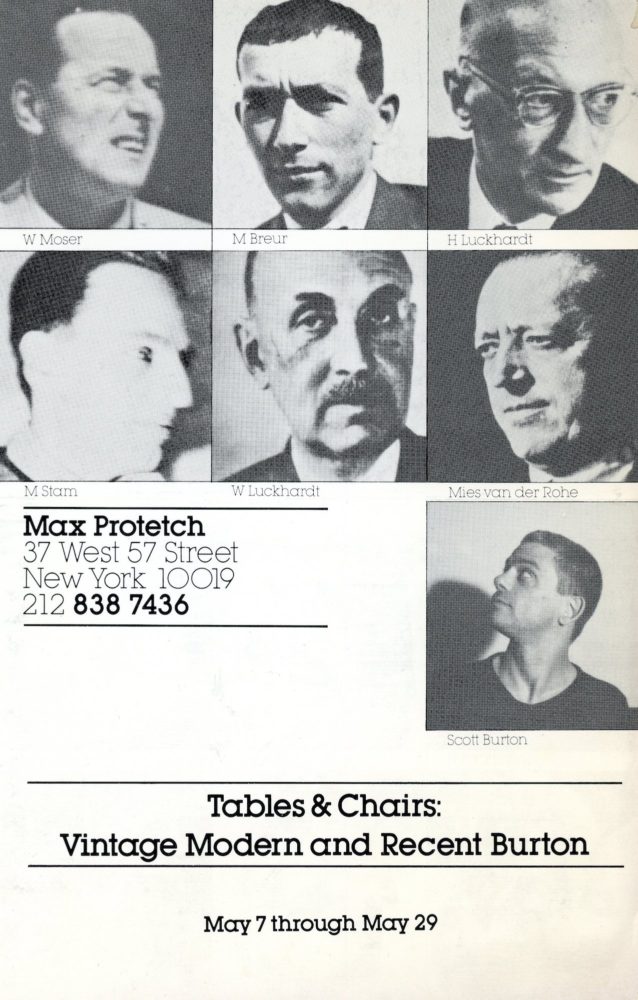 Scott Burton, Marcel Breuer, Wassili Luckhardt, Mart Stam, Tables & Chairs, Card, Max Protetch Gallery, 1983