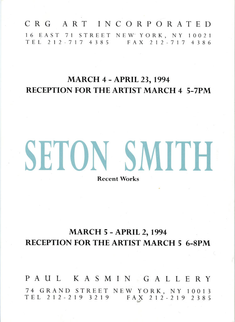 Seton Smith, Card, Paul Kasmin Gallery, 1994