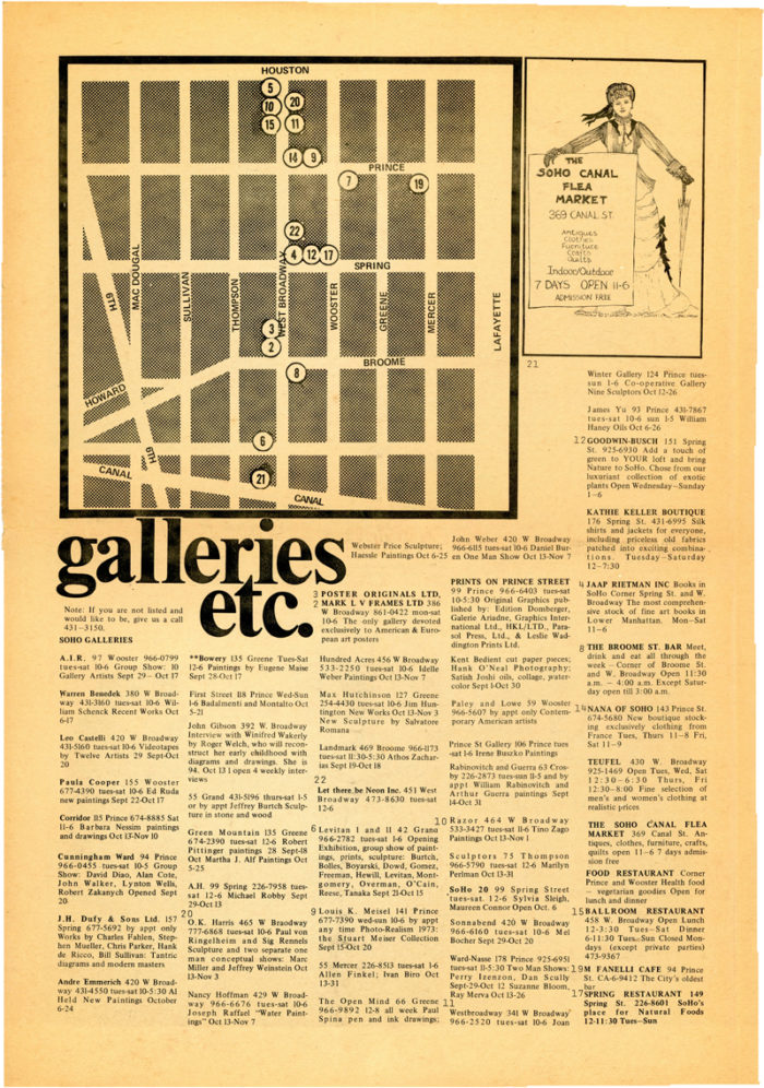 Soho News, Featuring a Map of Soho Galleries, Volume One Issue One, 1973