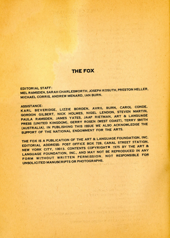 The Fox #2, 180-Page Magazine, Published by the Art & Language Foundation, 1975