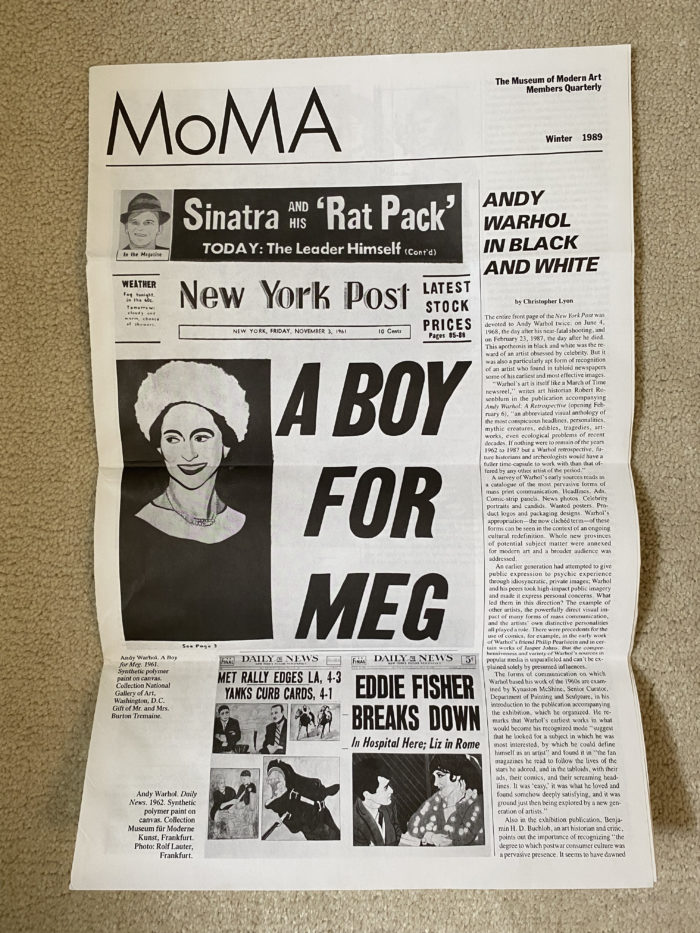 The Museum of Modern Art Members Quarterly, Andy Warhol in Black and White, Newspaper Publication, MoMA, 1989