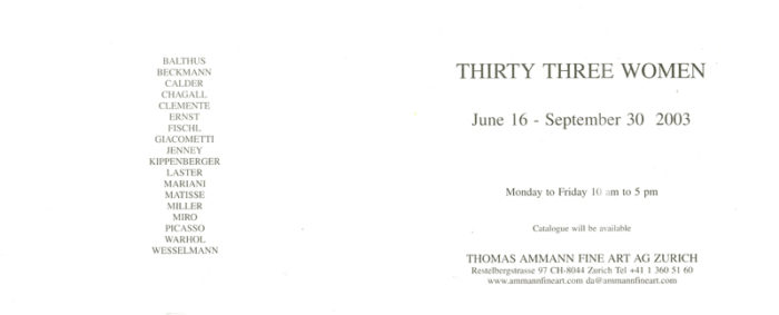Thirty Three Women, Group Show with Balthus, Fischl, Kippenberger, Folded Card, Thomas Ammann Fine Art Gallery (Zurich), 2003