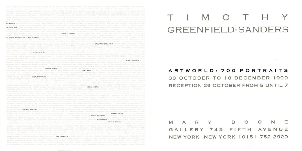 Timothy Greenfield Sanders, Art World Portraits, Mary Boone Gallery, Folded Card, 1999