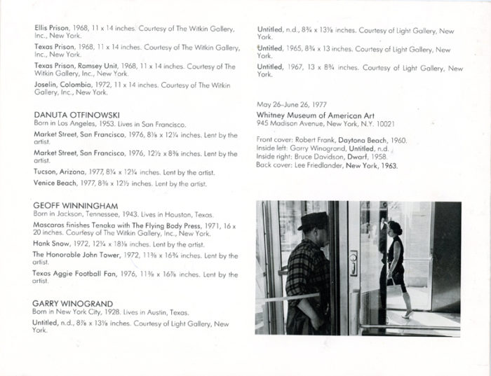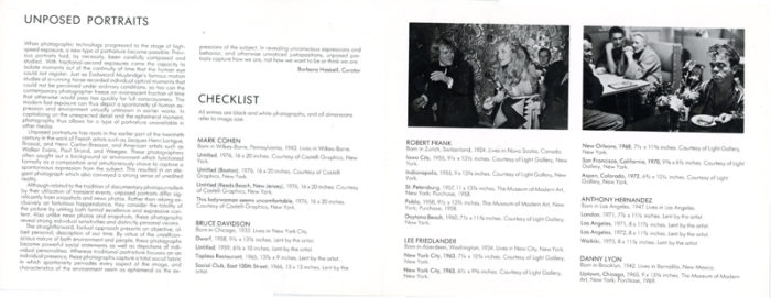 Unposed Portraits, Group Show with Robert Frank, Bruce Davidson, Danny Lyon, Garry Winogrand, Folded Card, Whitney Museum, 1977