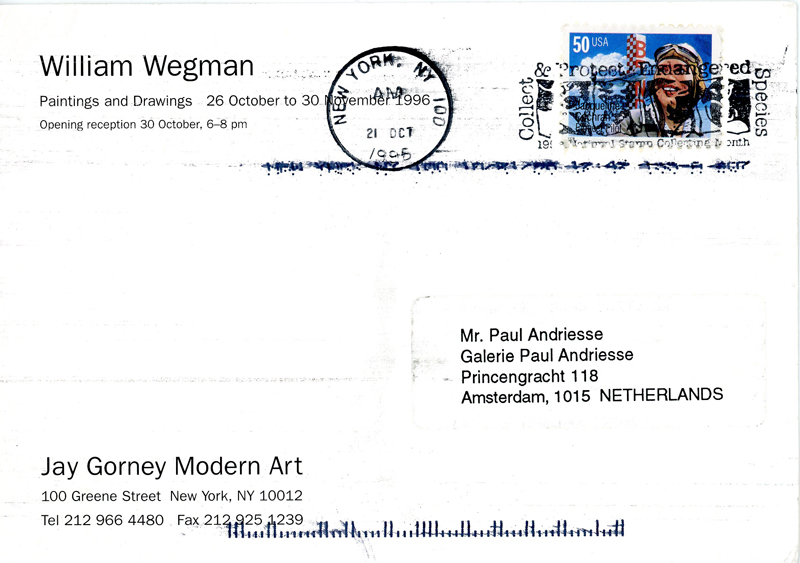 William Wegman, Sonnabend Gallery, Card, 1977