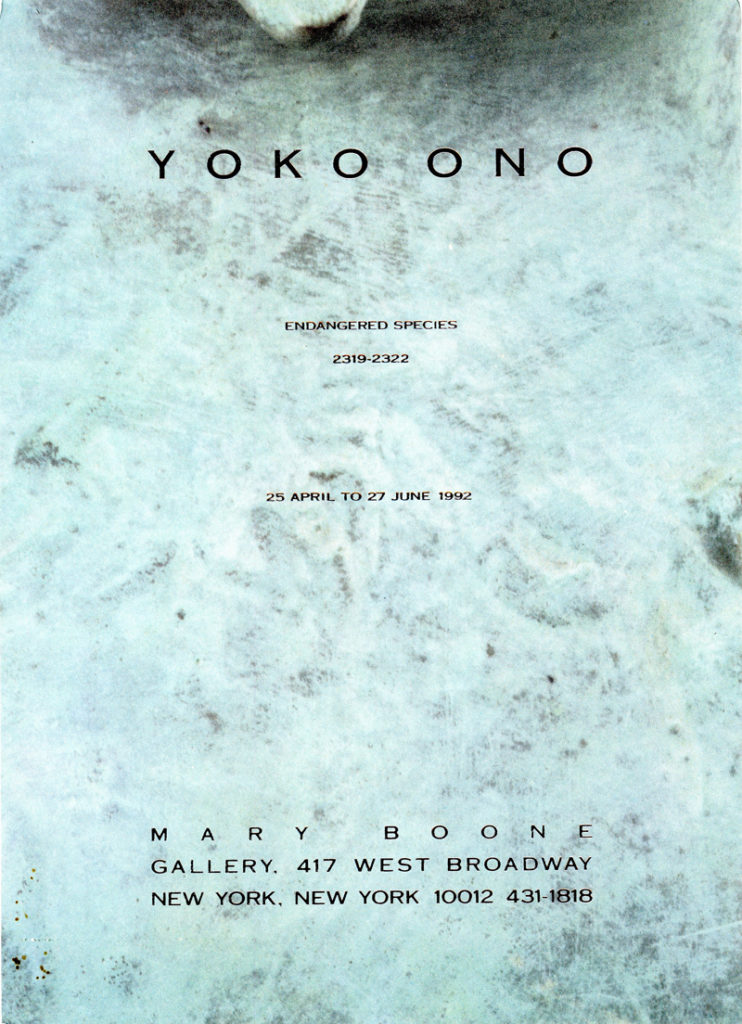 Yoko Ono, Endangered Species, Card, Mary Boone Gallery, 1992