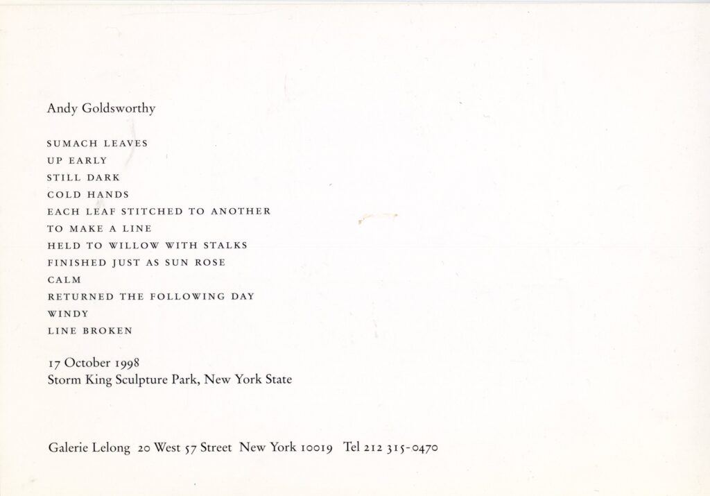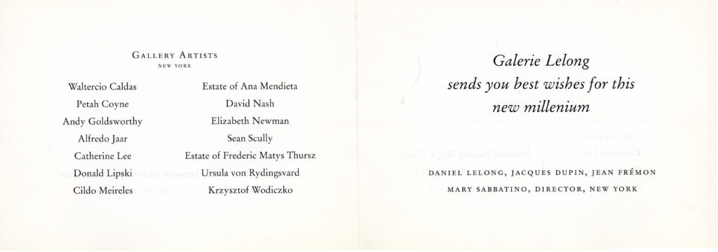 Andy Goldsworthy, Ana Mendieta, Alfredo Jaar, Galerie Lelong, Folded Card, 1999