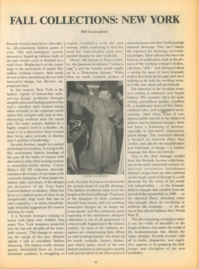 “Fall Collections: New York,” 13-page article by Bill Cunningham
