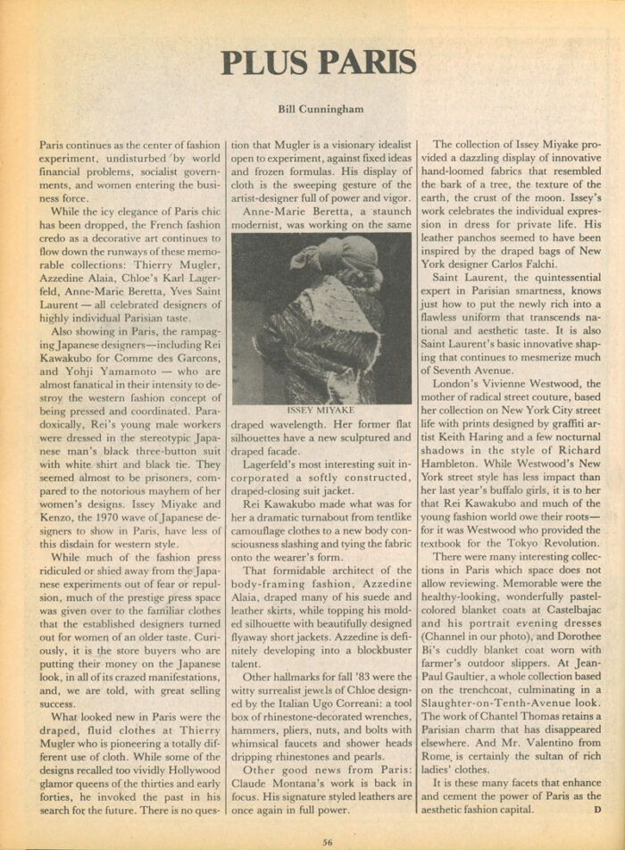 “Plus Paris,” 8-page article by Bill Cunningham
