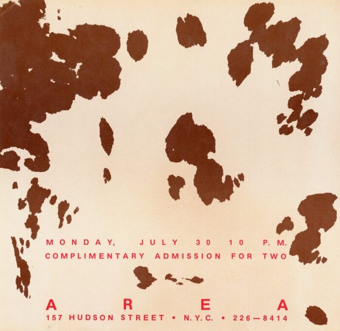 AREA became New York City’s top club in the mid-80s, with much of its success rooted in its popularity among artists, many of whom participated in the club’s ambitious program of creating new themes and décor every six weeks.