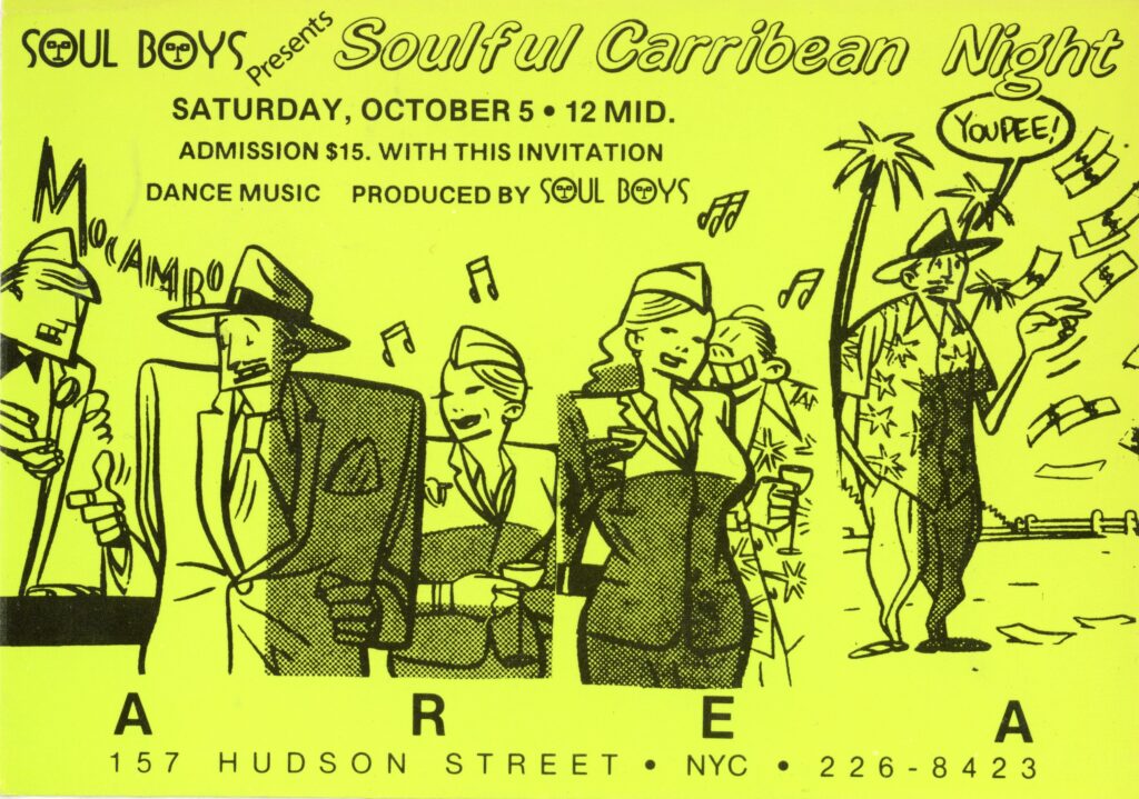 AREA Nightclub, Soul Boys Presents Soulful Carribean Night, Card, 1985