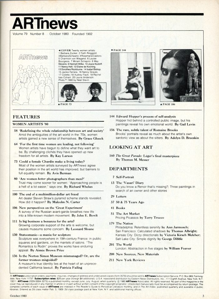 ARTnews, Where Are The Great Men Artists?, Cover photo by Neil Slavin, Full Magazine, Vol. 79 #8, 1980