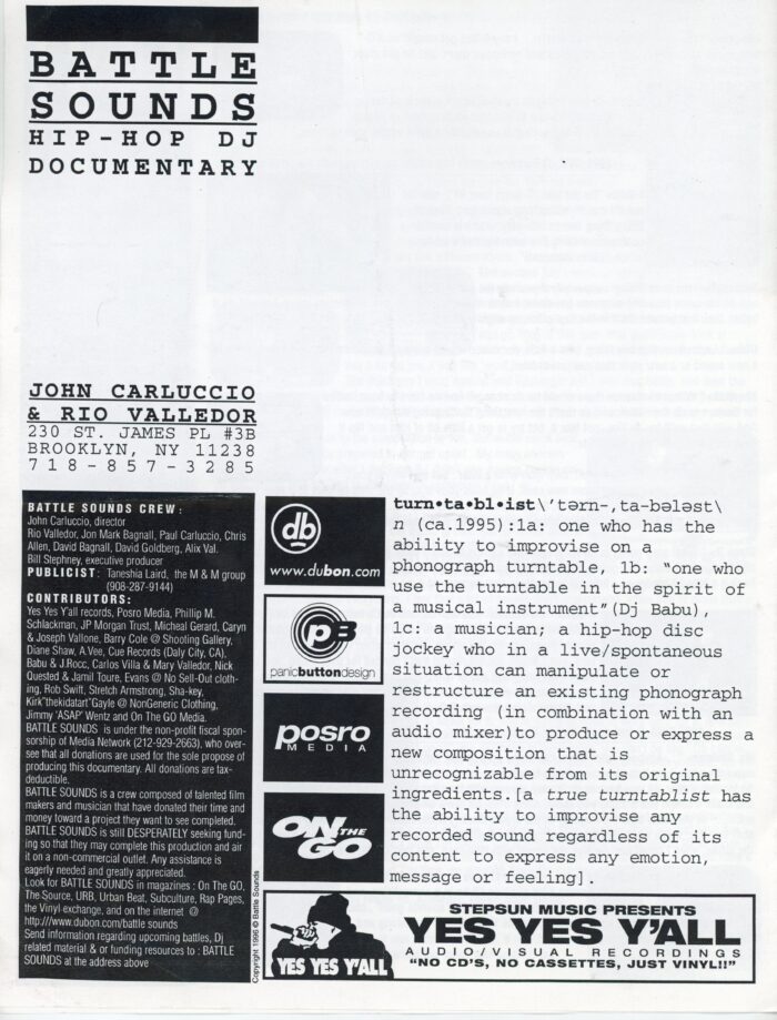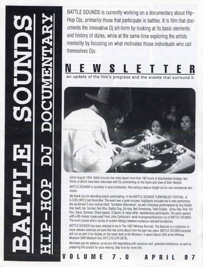 Battle Sounds: Hip Hop Documentary, Folded Newsletter, 1997