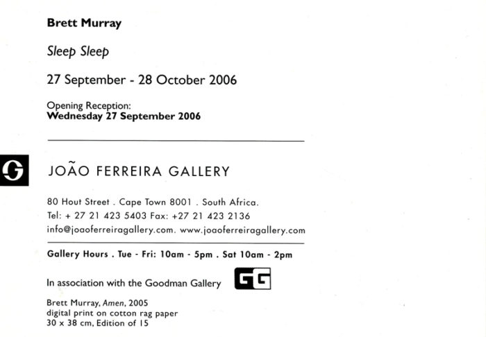 (2005), Card for the Exhibition “Sleep Sleep,” Joao Ferreira Gallery (South Africa), 2006