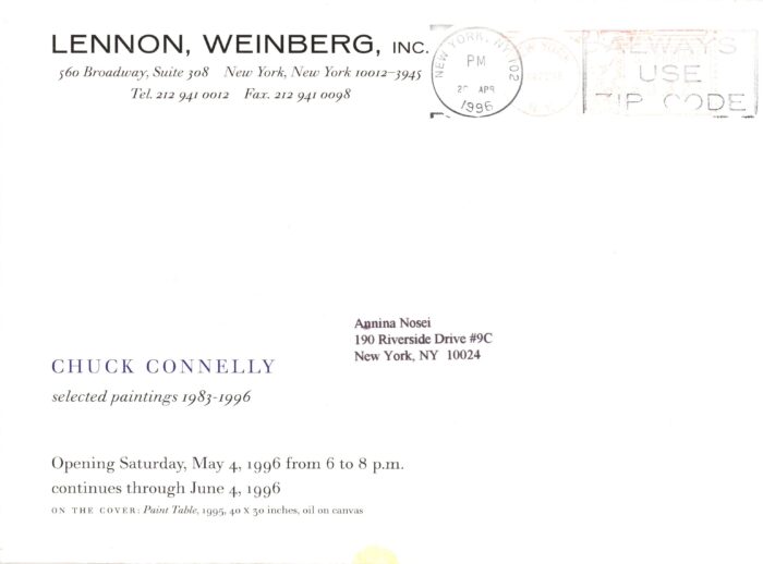 Chuck Connelly, Hand-Written Invitation to Exhibition Opening from Annina Nosei, Card, Annina Nosei Gallery, 1984