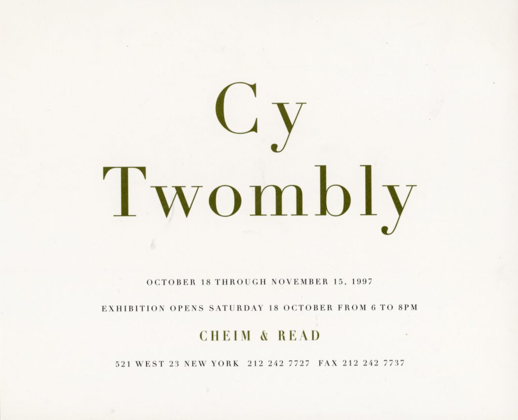 Cy Twombly, Cheim & Read, Folded Card, 1997