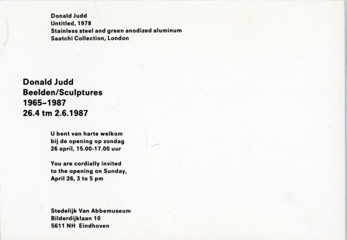 Donald Judd, Stedelijk Van Abbemuseum (NL), Card, 1978