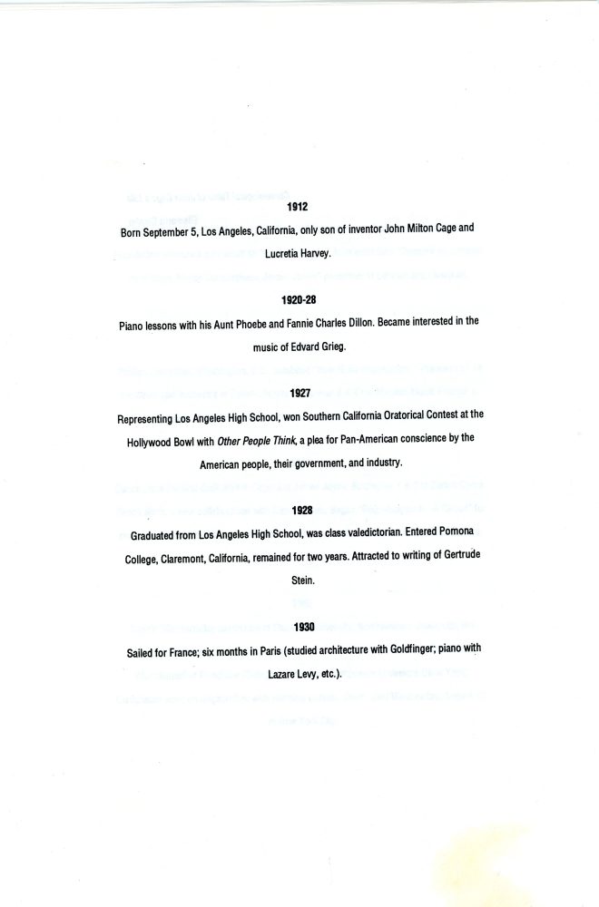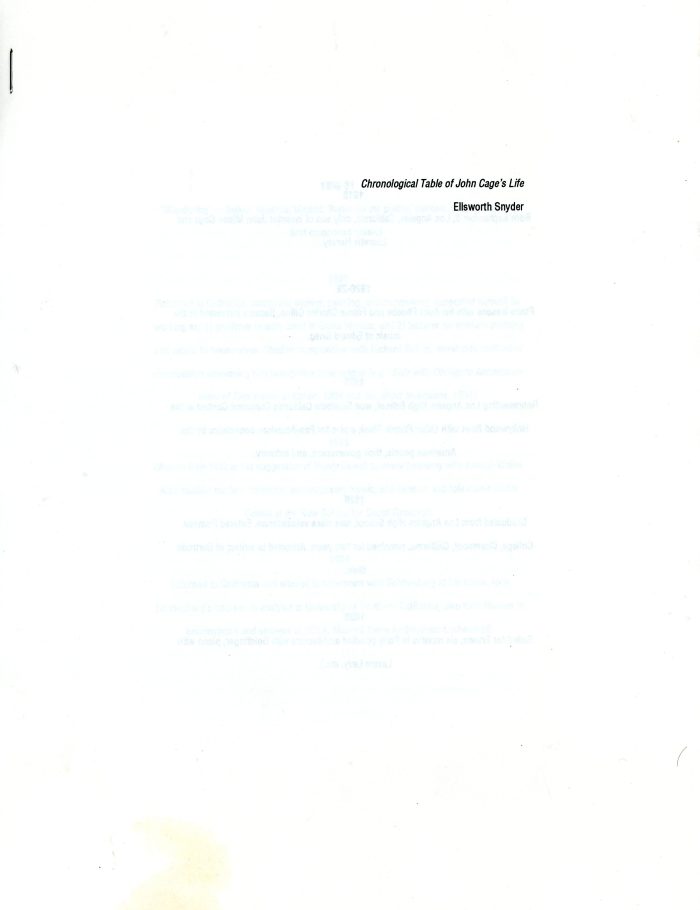 E.A.T. (Experiments in Art and Technology), John Cage & Ellsworth Snyder, Two Texts Concerning John Cage; Chronology and Autobiography, 1992
