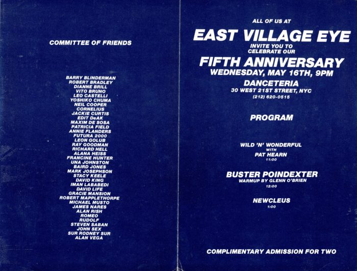 East Village Eye, 5th Anniversary Party at Danceteria with Entertainment by Buster Poindexter (David Johansen, formally of the New York Dolls), Folded Card, Cover by Futura, 1984
