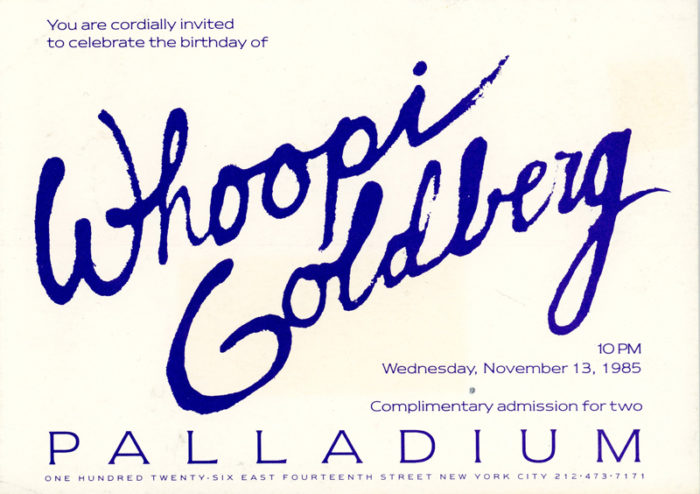 Invitation to Birthday Party for Whoopi Goldberg, Card, Palladium, 1985