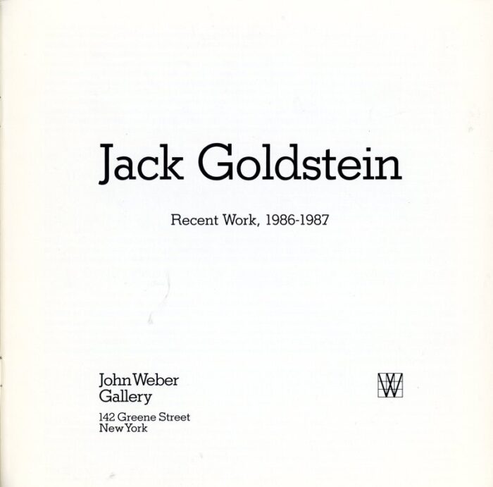 Jack Goldstein, John Weber Gallery, 21-Page Catalog, 1987
