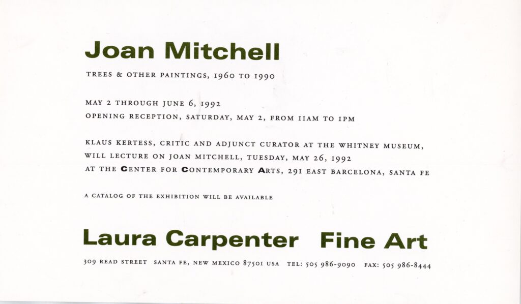 Joan Mitchell, Daniel Blau Gallery (Germany), Two-Fold Card, 1993