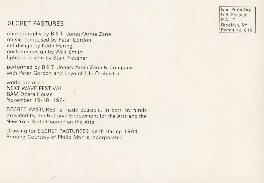 Performed by Bill T. Jones with Arnie Zane & Company, Brooklyn Academy of Music, Card, 1984