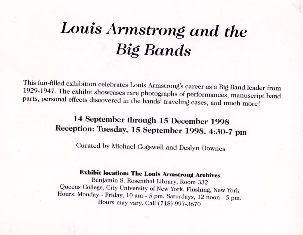 Louis Armstrong House and Archives, Louis Armstrong and the Big Bands, Folded Card, 1998