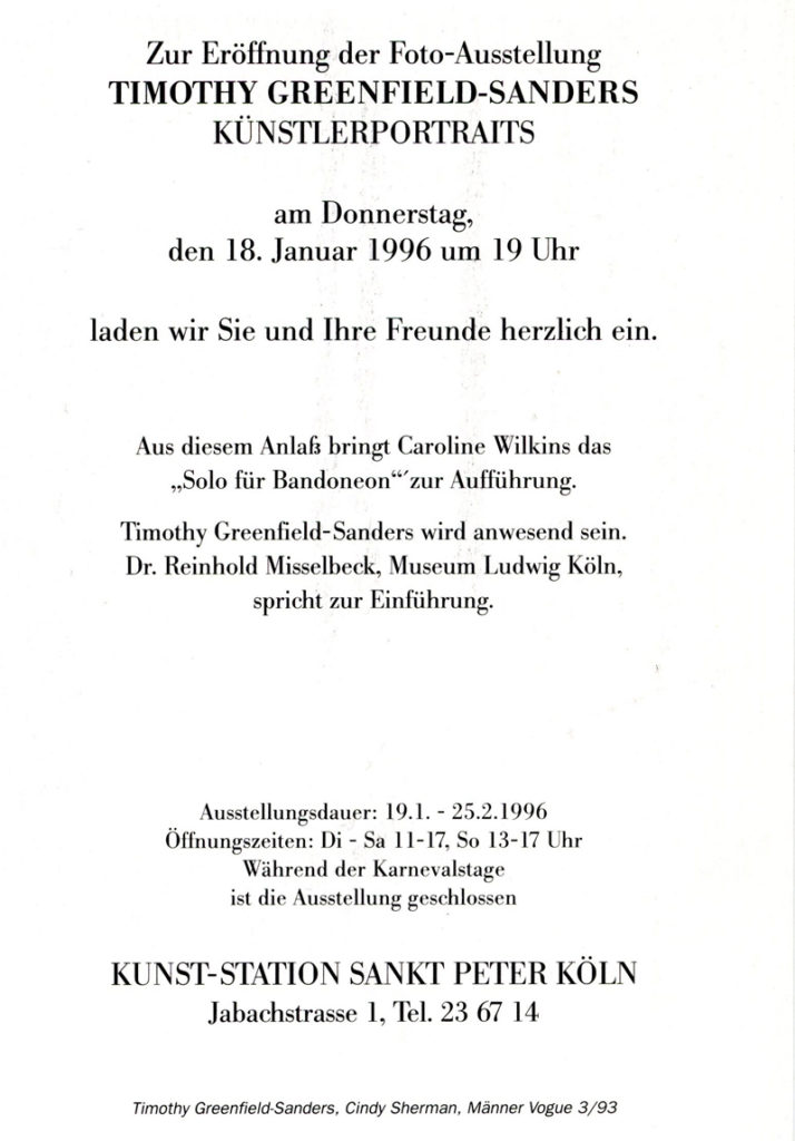 Cindy Sherman, Portraits by Timothy Greenfield-Sanders, Card, Ludwig Köln Museum (Germany), 1996