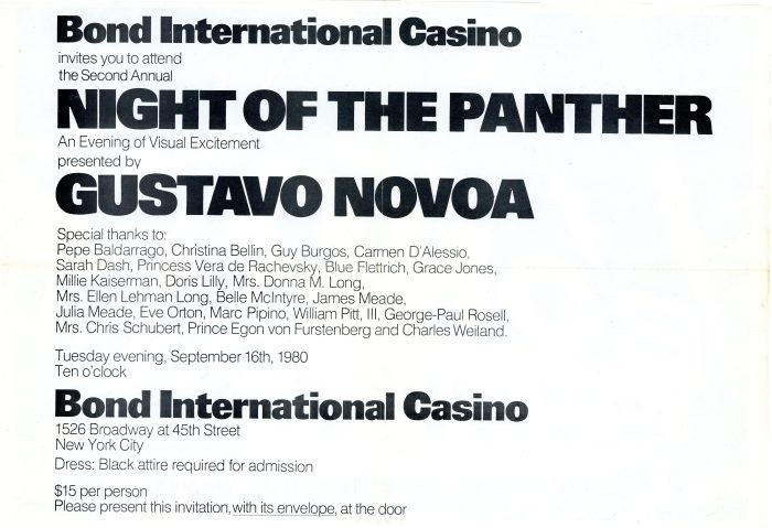 Night of the Panther, An Evening of Visual Excitement Presented by Gustavo Novoa, Double-Sided Flyer, Bond International Casino, 1980