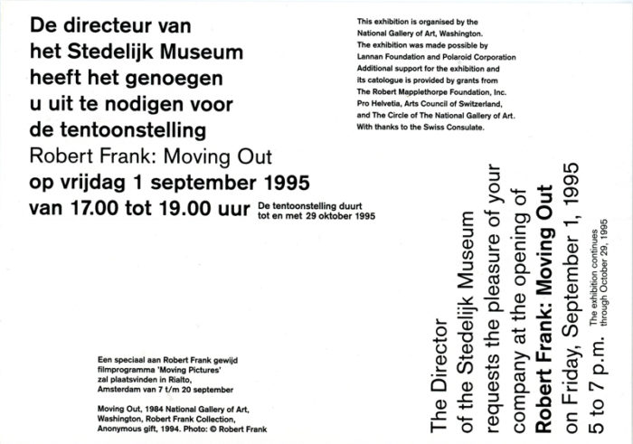 Robert Frank, Moving Out, Card, Stedelijk Museum (Amsterdam), 1995