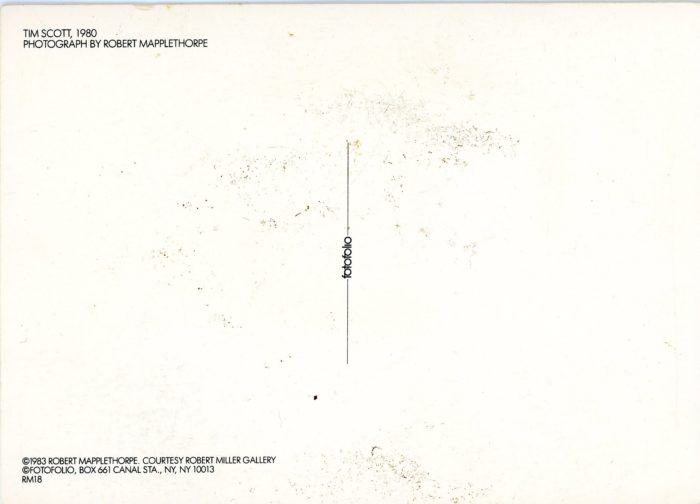 Robert Mapplethorpe, Tim Scott (1980), Fotofolio, card, 1983.
