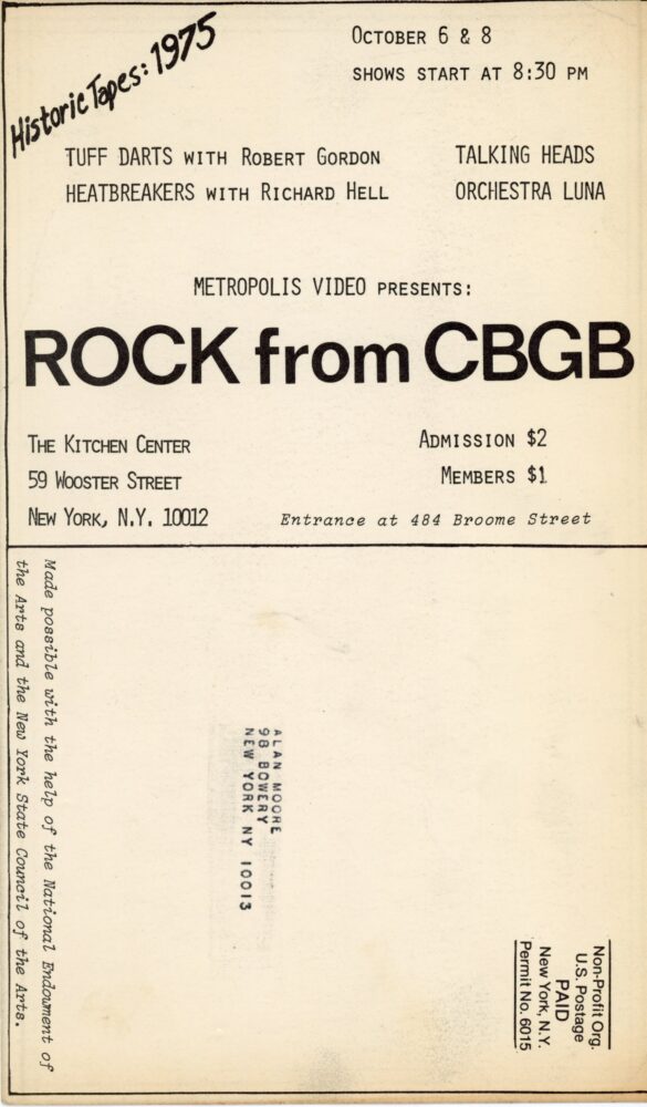 Talking Heads, Metropolis Video Presents Rock from CBGB, The Kitchen, Card, 1977