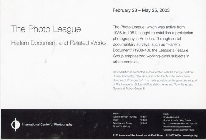 The Photo League, Scenes from the Living Theatre: No 1. Masses and Men, International Center of Photography, Card, 2003