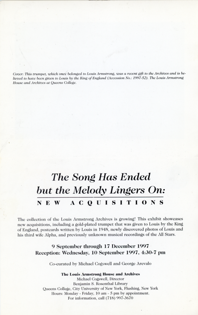 Louis Armstrong House and Archives, The Song Has Ended but the Melody Lingers On, Folded Card, 1997