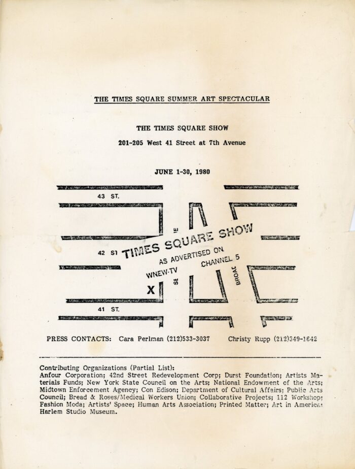 The Times Square Show, With Press Contacts Cara Perlman and Christy Rupp, Flyer, 1980
