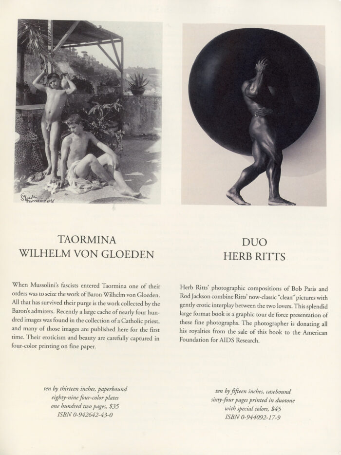 Twin Palms, with Duane Michals, Ellen Von Unwerth, Herb Ritts, 22-Page Catalogue, Twelve Trees Publishers, 1995