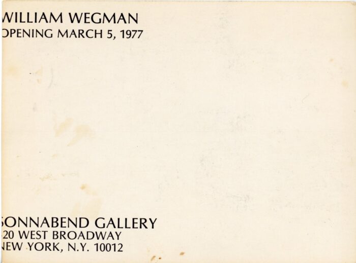 William Wegman, Card, Sonnabend Gallery (Paris), 1977