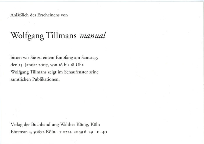 Wolfgang Tillmans, Card Promoting the Book